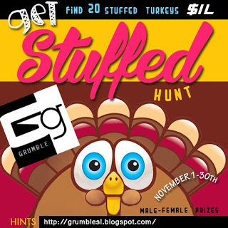 Get your hunt on! Grumble has provided me with some of the items available at their sim wide Get Stuffed Hunt. I am extremely pleased with what they are offering for only 1L. 20 Stuffed turkeys with goodies hidden throughout the sim. I love this jacket and these boots!!!! Extremely pleased with the items and they are great quality <3